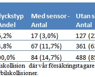 Se nedan för bilagd tabell över olycksfördelning och andelen bilar med backsensor.