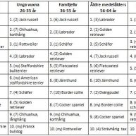 Topplistor – populäraste hundraserna i olika åldersgrupper*